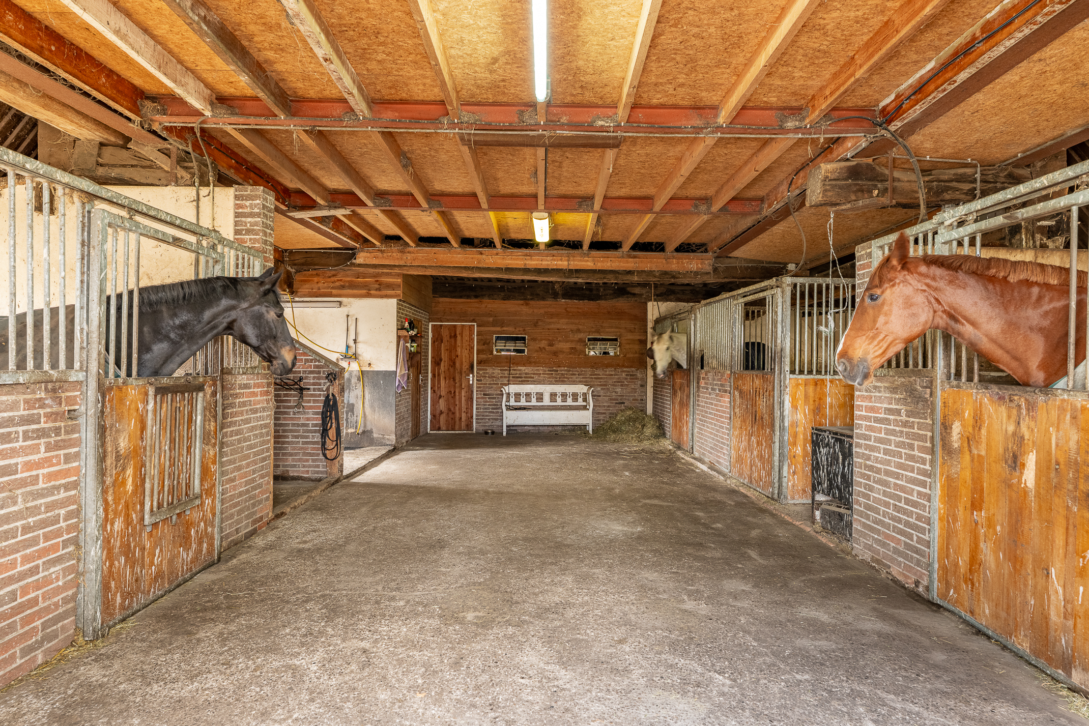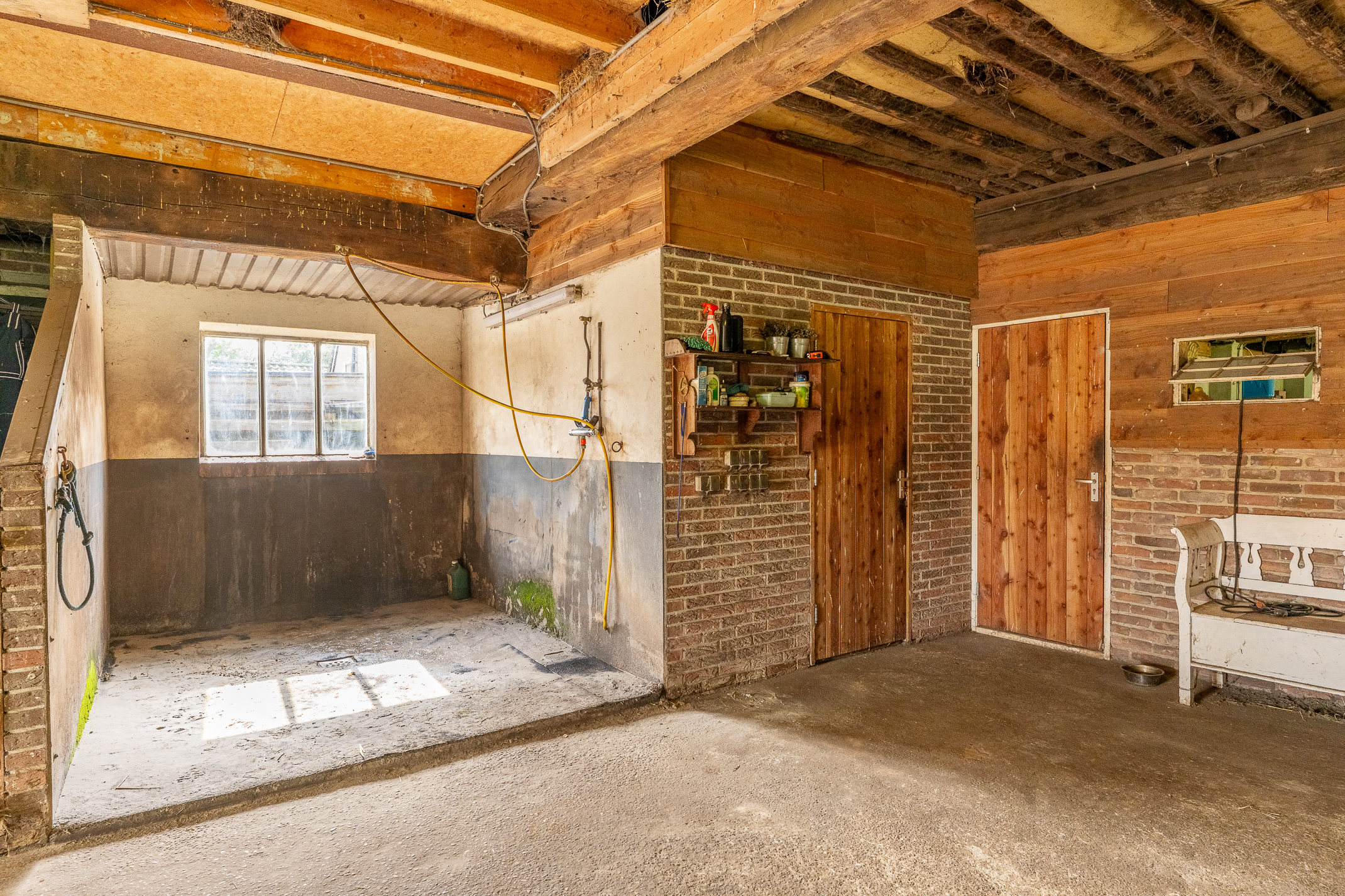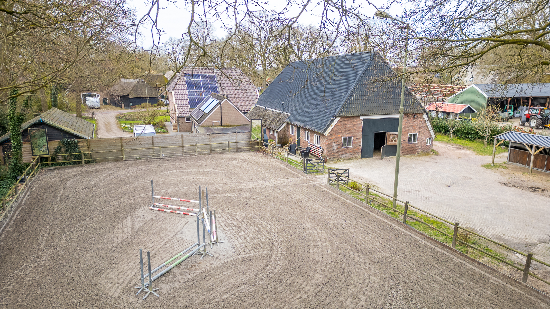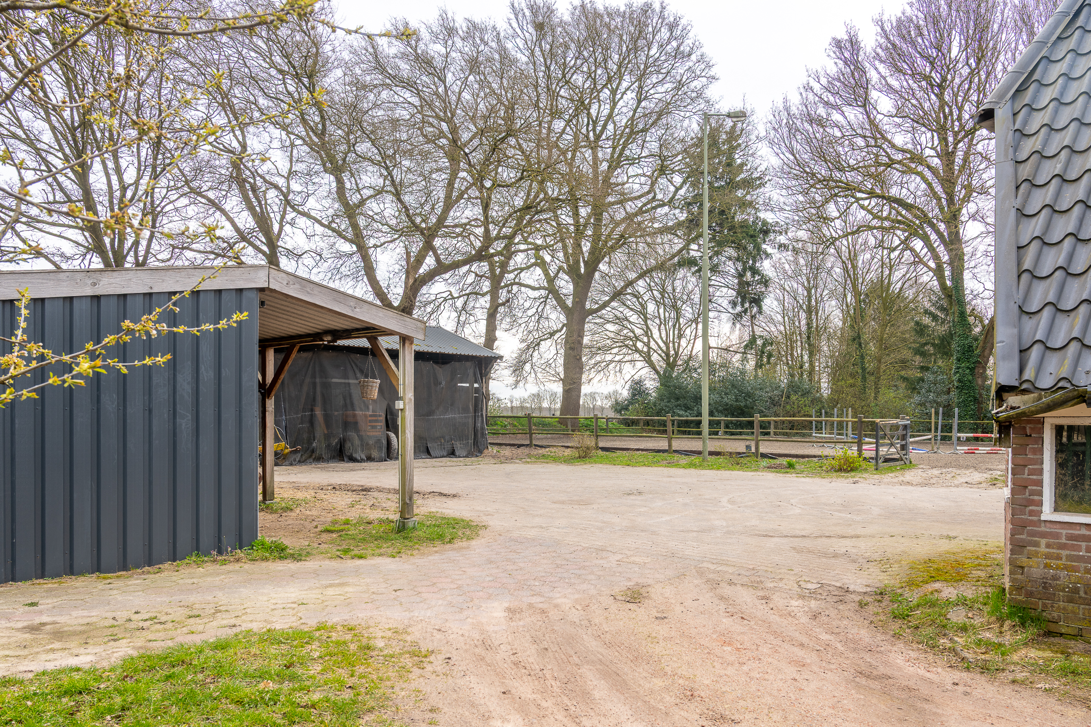 Deze half vrijstaande woonboerderij is gebouwd omstreeks 1927. In de loop van de jaren is er verbouwd en gemoderniseerd. De aangebouwde schuur (opp. ca. 239 m² en van binnenuit bereikbaar) bevat nu berging/stalling, paardenboxen, een wasplaats en zadelkamer. Er is een rijbak aanwezig, maar rijd je geen paard dan kan een tuin ook simpel worden aangelegd (zie foto’s). Het geheel ligt op een perceel van 2745 m².