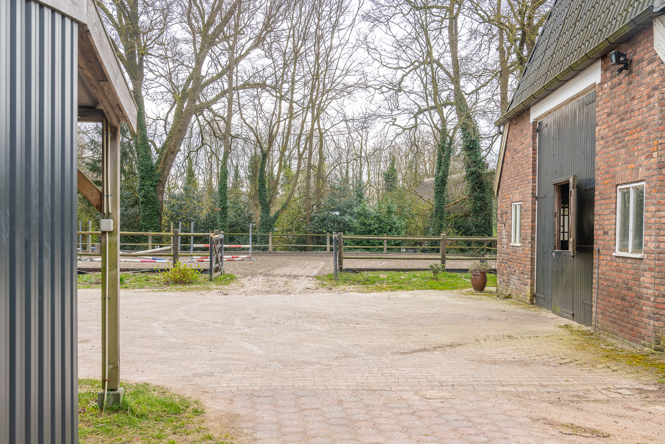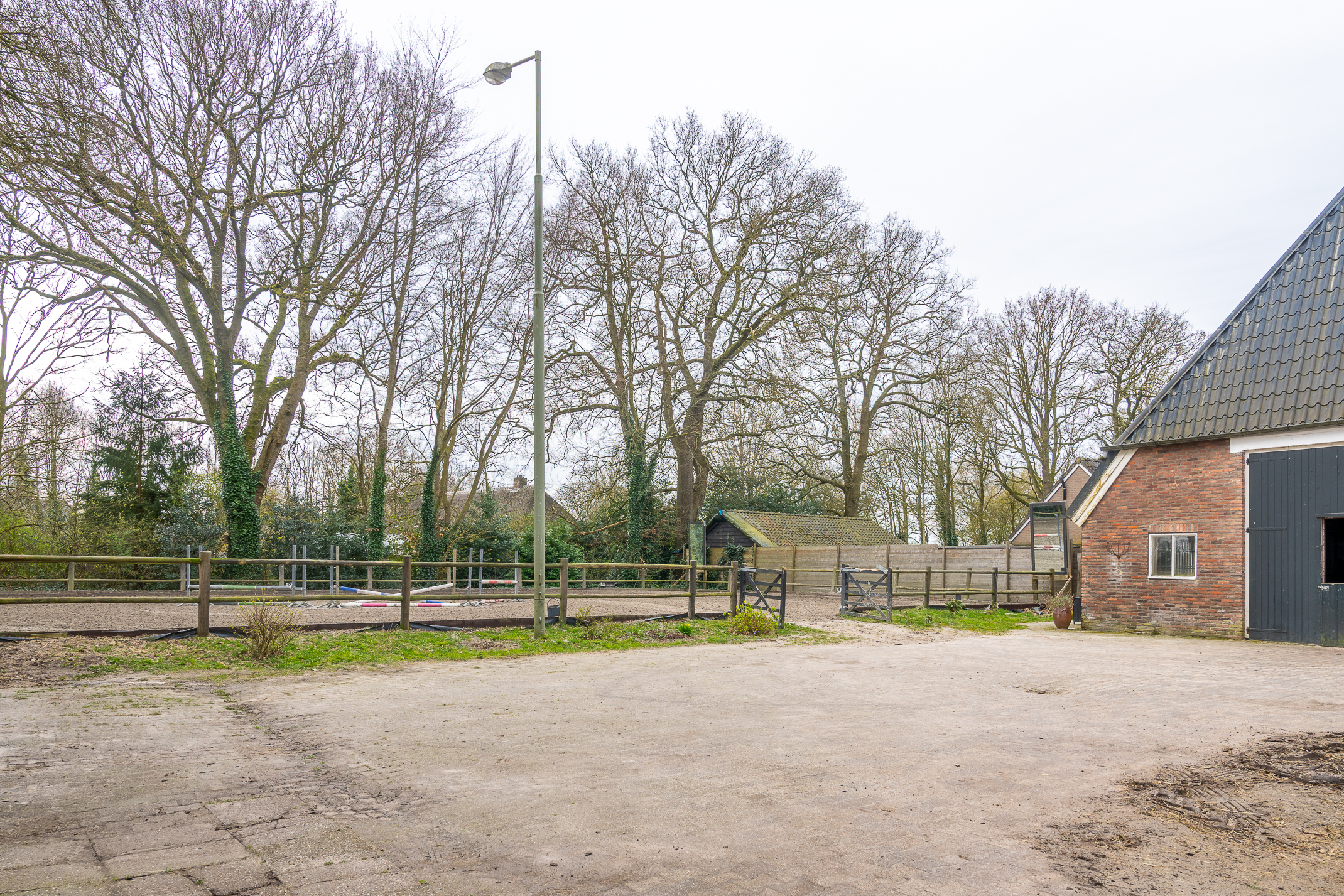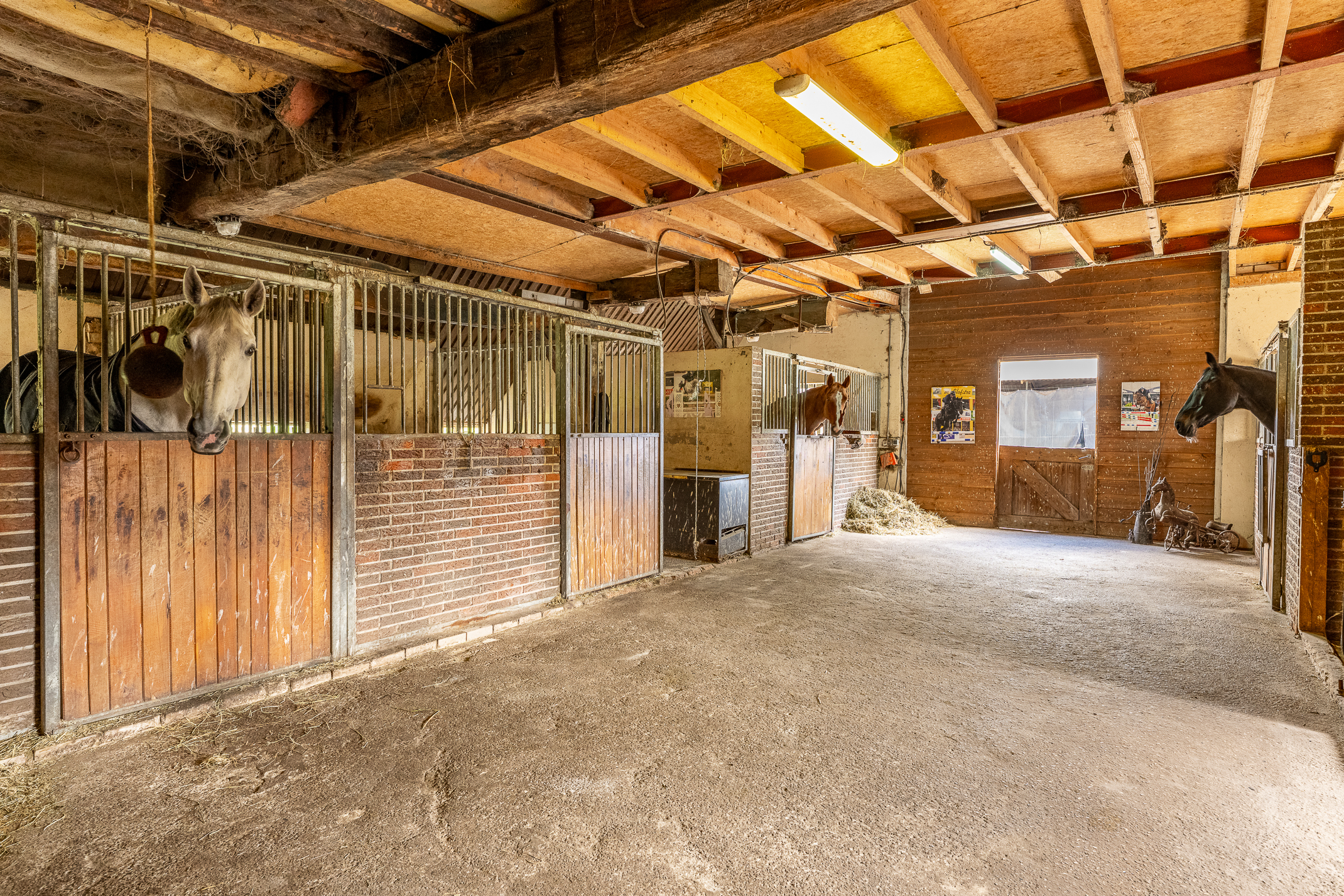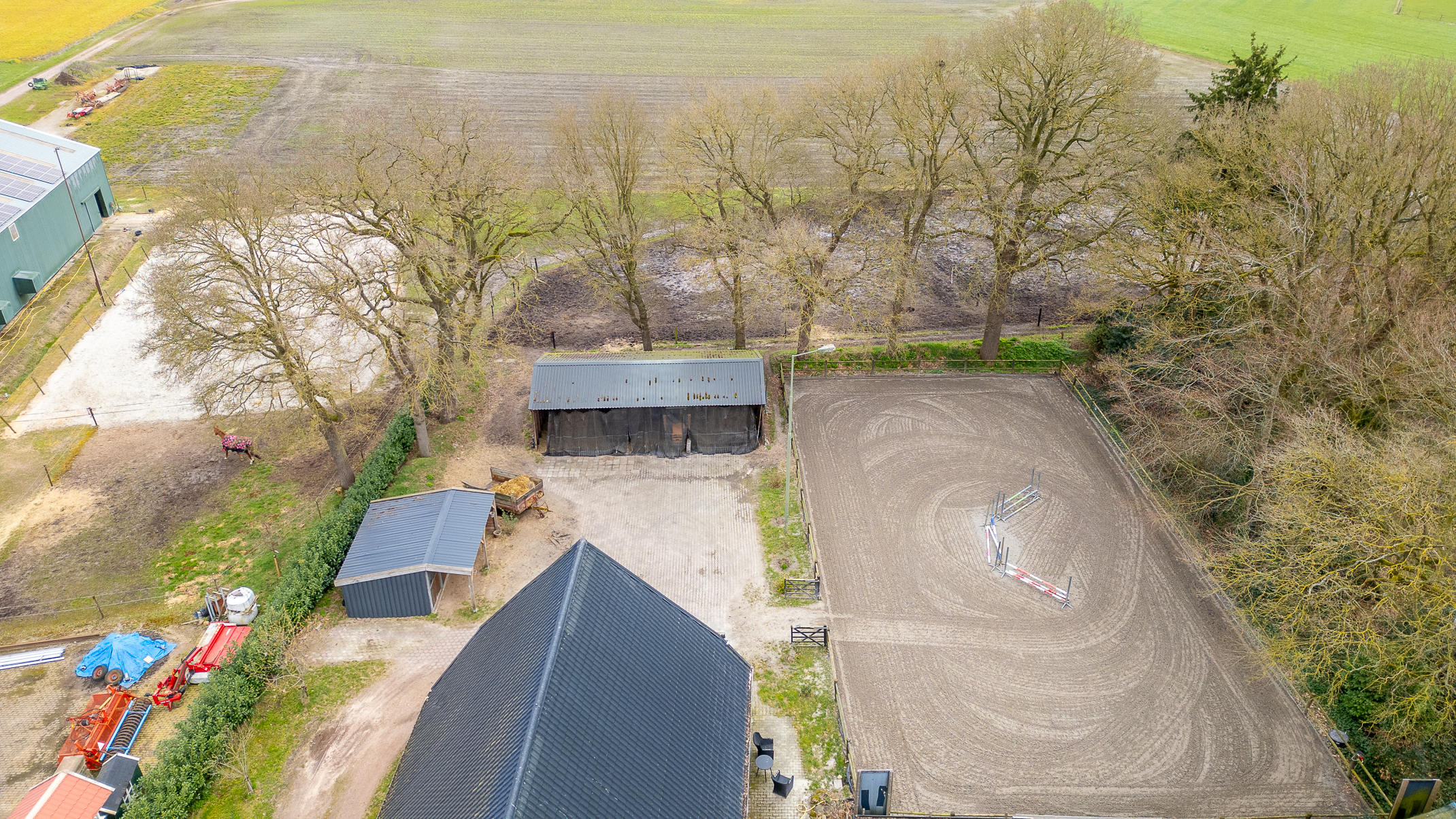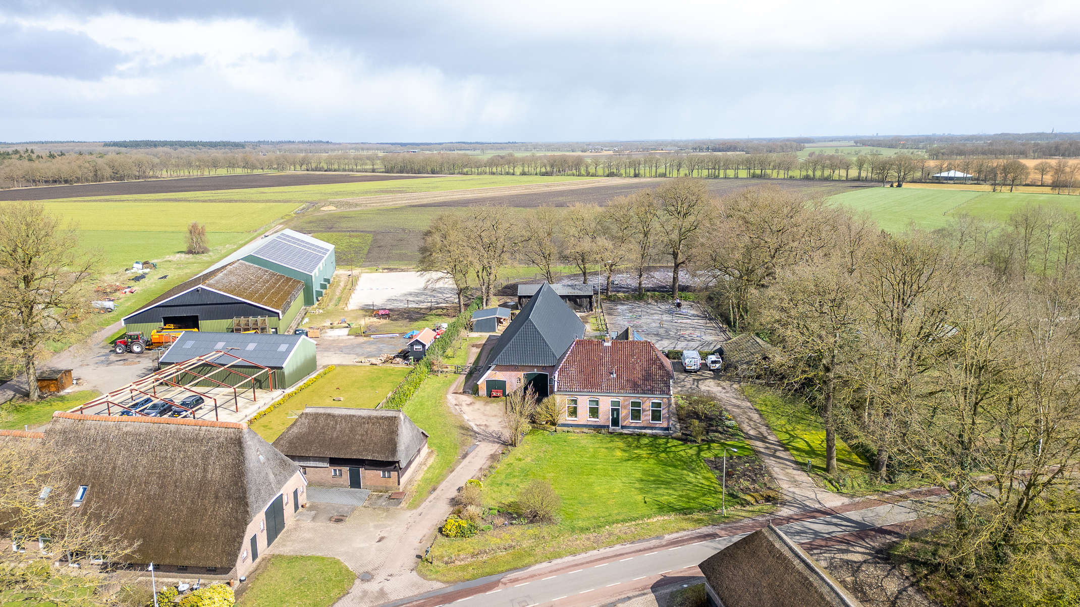Deze half vrijstaande woonboerderij is gebouwd omstreeks 1927. In de loop van de jaren is er verbouwd en gemoderniseerd. De aangebouwde schuur (opp. ca. 239 m² en van binnenuit bereikbaar) bevat nu berging/stalling, paardenboxen, een wasplaats en zadelkamer. Er is een rijbak aanwezig, maar rijd je geen paard dan kan een tuin ook simpel worden aangelegd (zie foto’s). Het geheel ligt op een perceel van 2745 m².