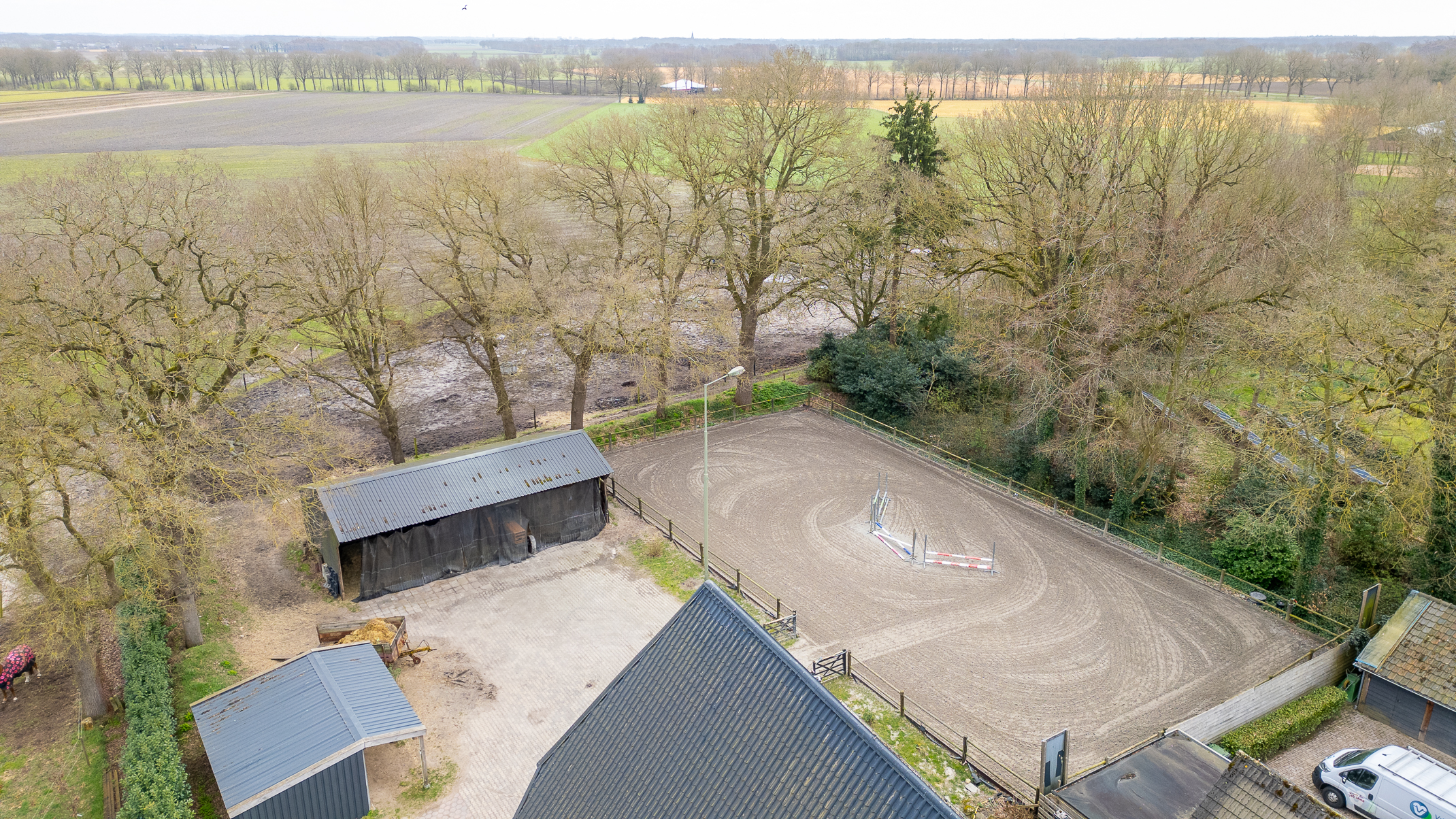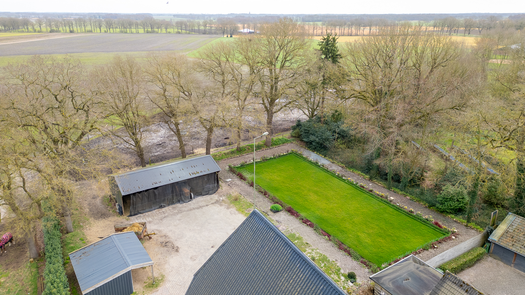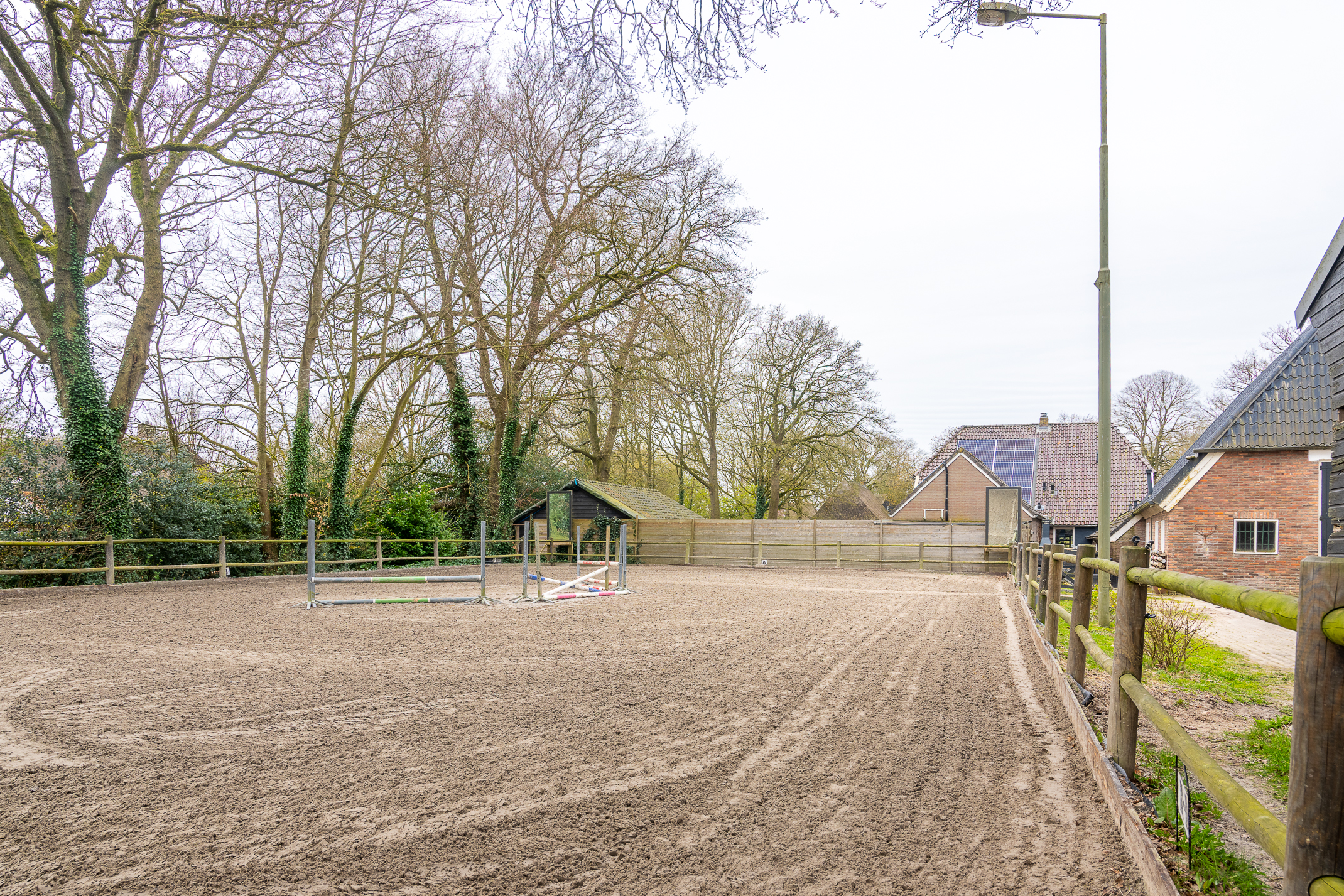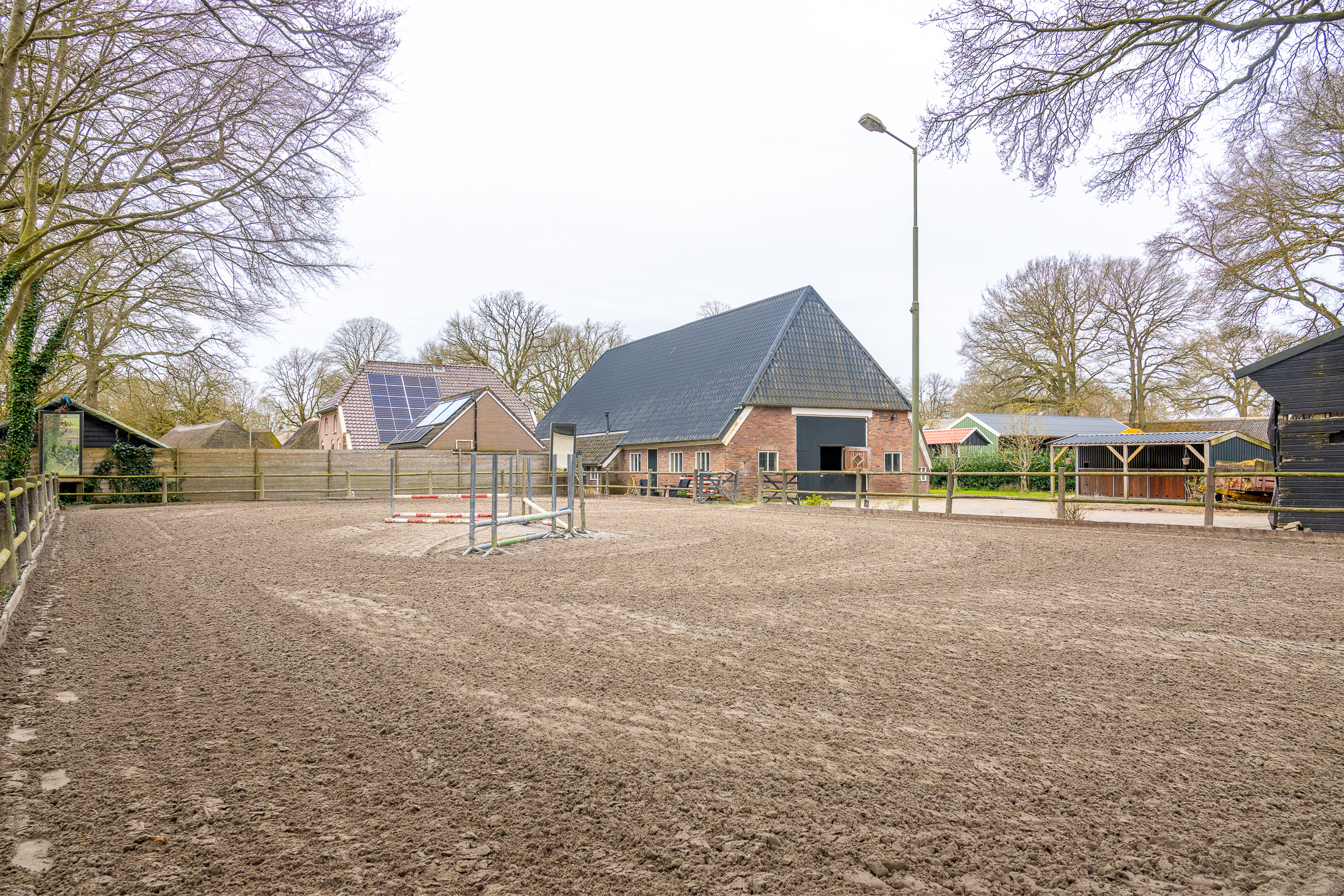 Deze half vrijstaande woonboerderij is gebouwd omstreeks 1927. In de loop van de jaren is er verbouwd en gemoderniseerd. De aangebouwde schuur (opp. ca. 239 m² en van binnenuit bereikbaar) bevat nu berging/stalling, paardenboxen, een wasplaats en zadelkamer. Er is een rijbak aanwezig, maar rijd je geen paard dan kan een tuin ook simpel worden aangelegd (zie foto’s). Het geheel ligt op een perceel van 2745 m².