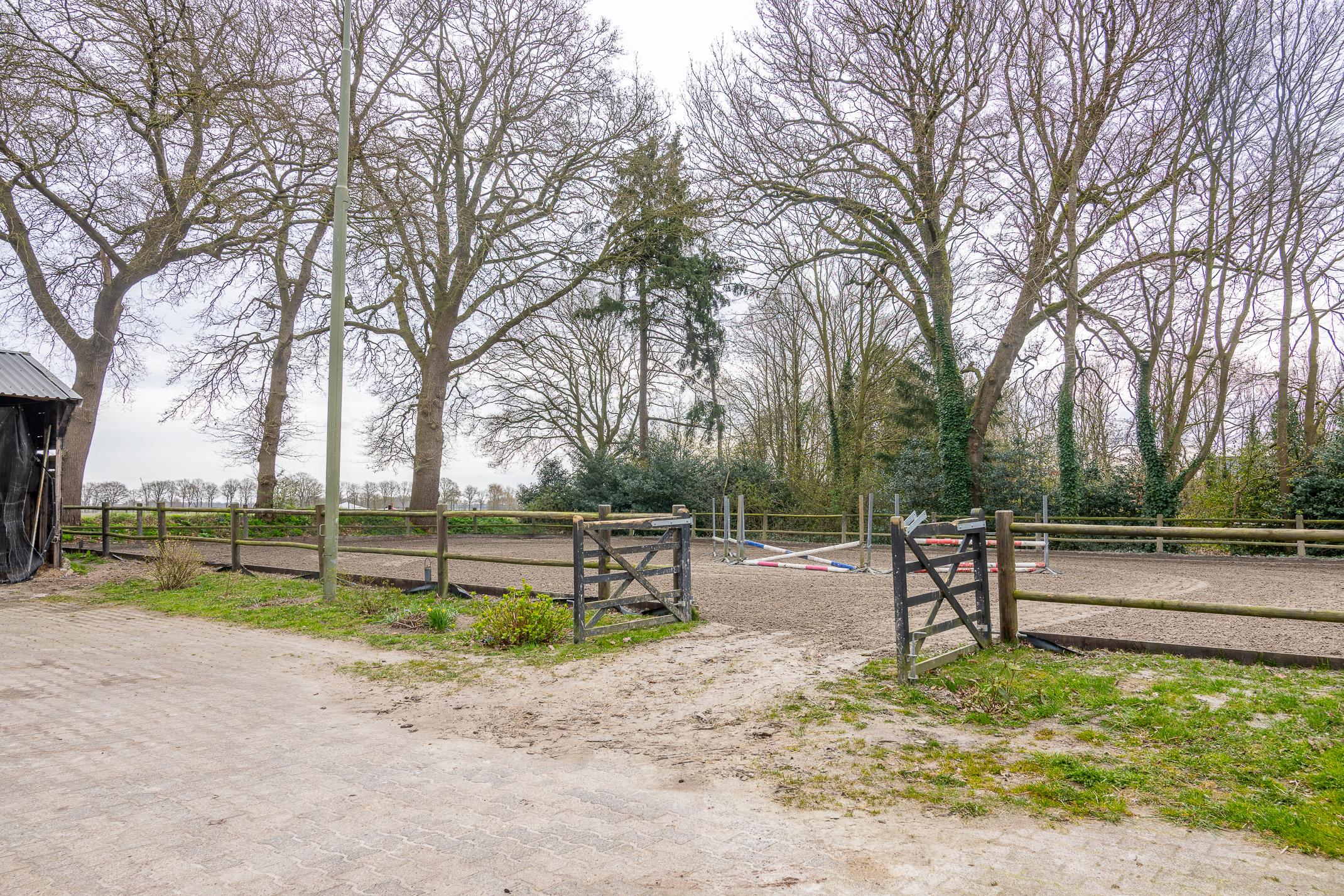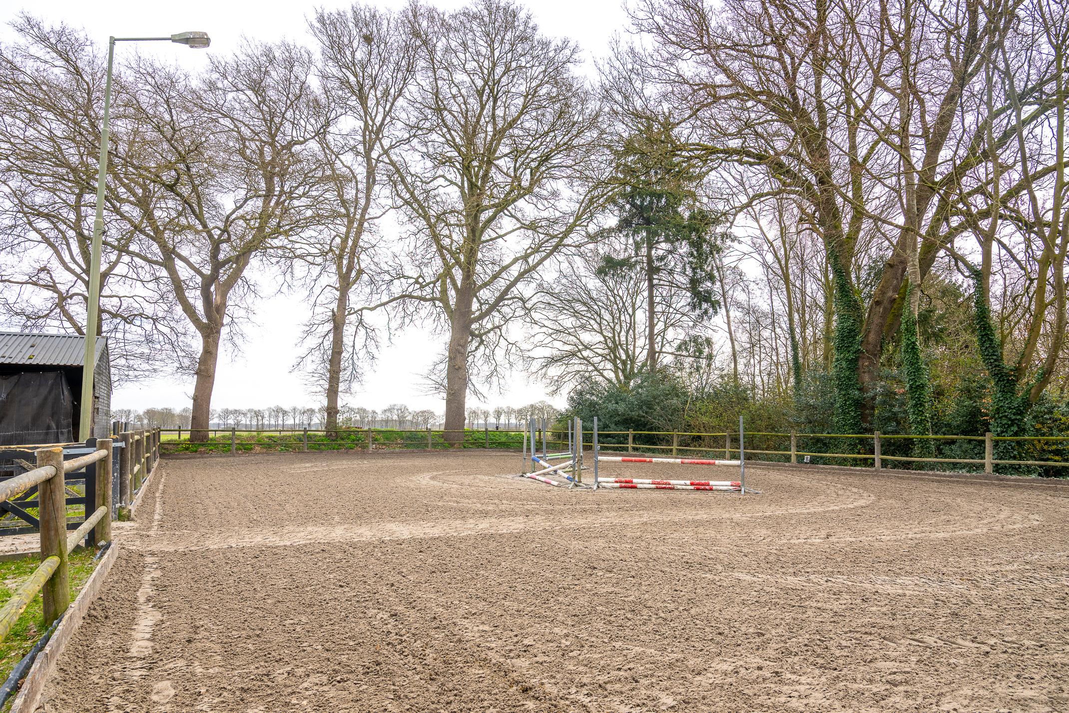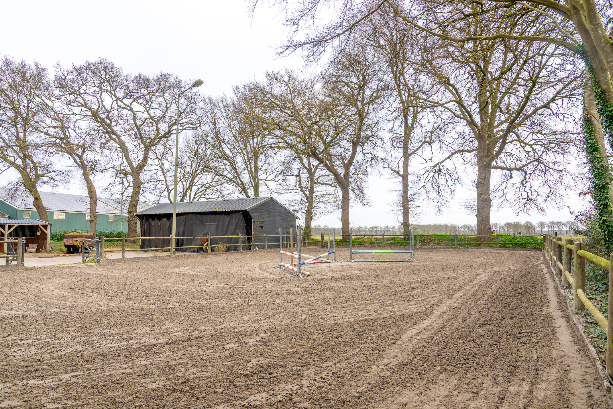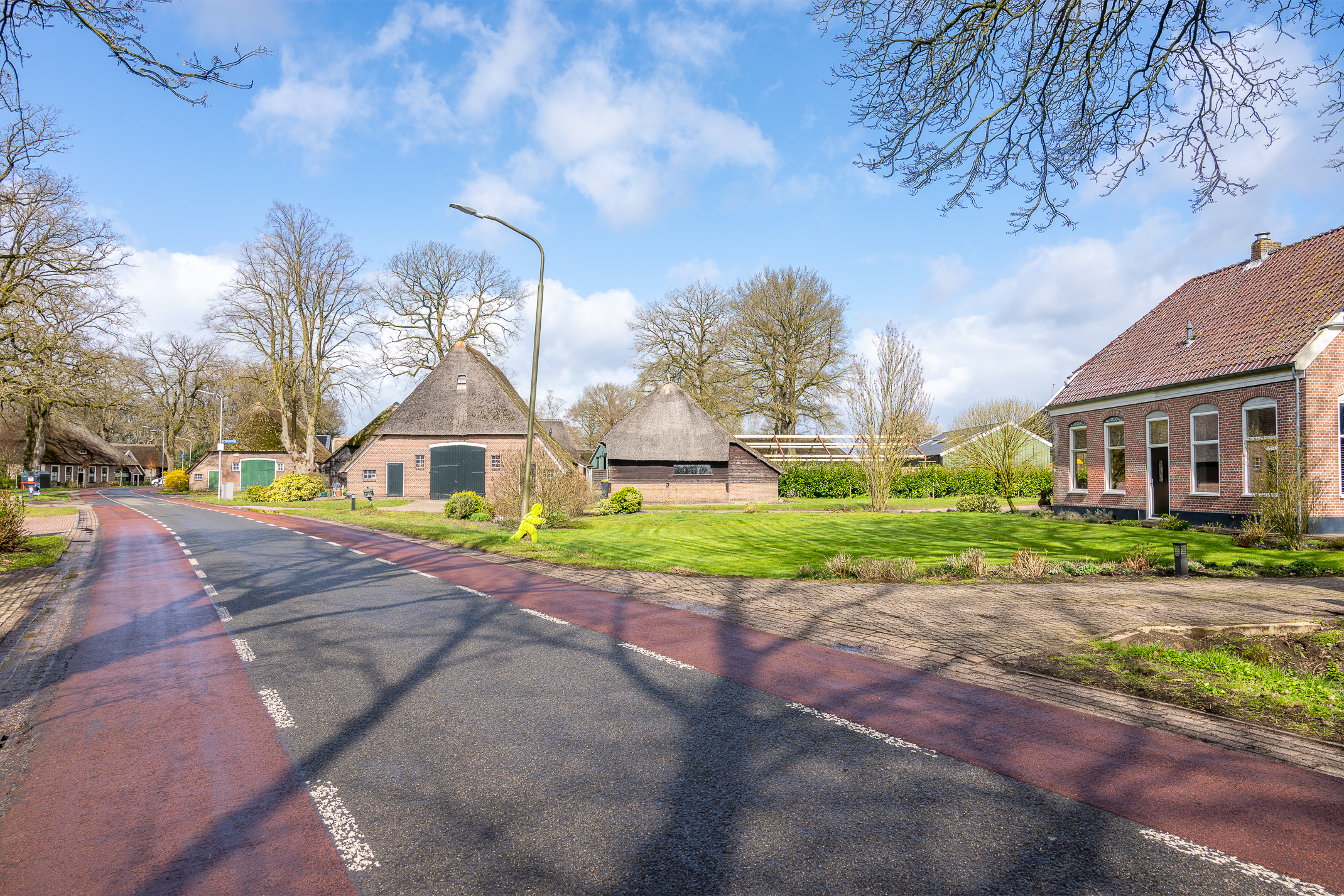 Deze half vrijstaande woonboerderij is gebouwd omstreeks 1927. In de loop van de jaren is er verbouwd en gemoderniseerd. De aangebouwde schuur (opp. ca. 239 m² en van binnenuit bereikbaar) bevat nu berging/stalling, paardenboxen, een wasplaats en zadelkamer. Er is een rijbak aanwezig, maar rijd je geen paard dan kan een tuin ook simpel worden aangelegd (zie foto’s). Het geheel ligt op een perceel van 2745 m².