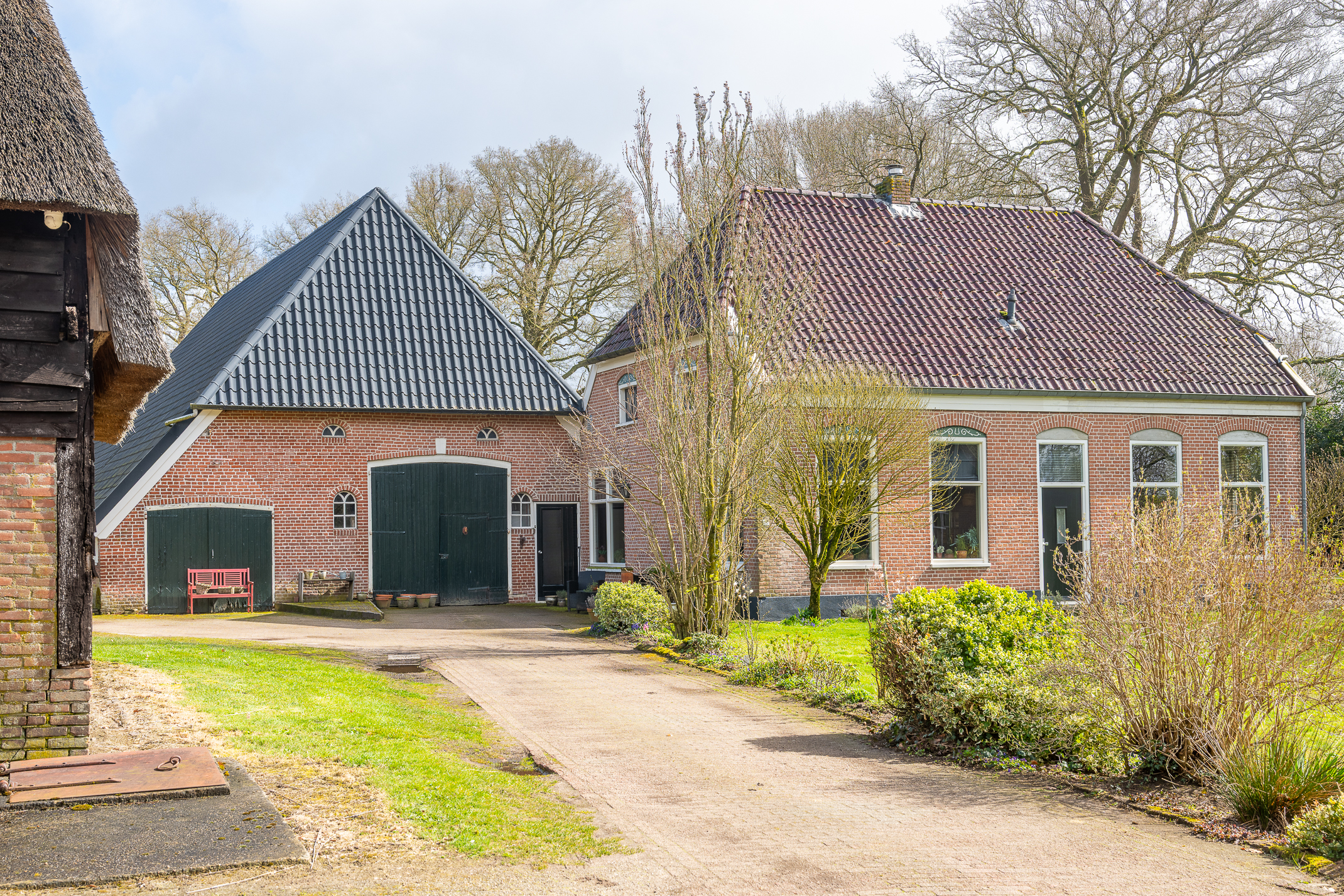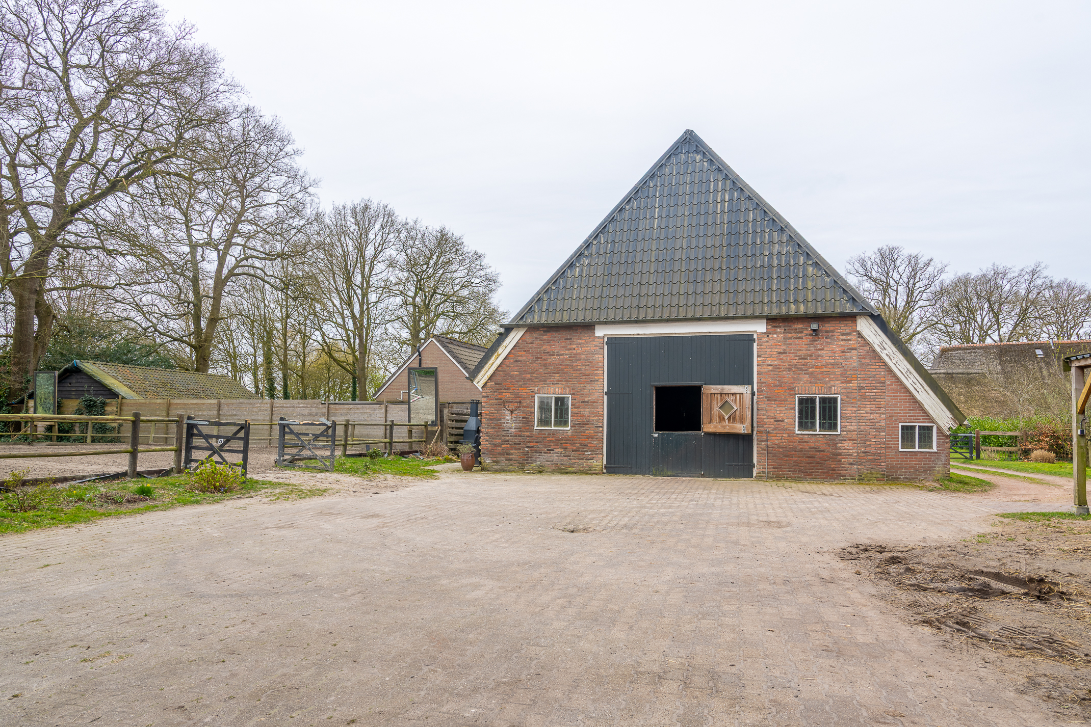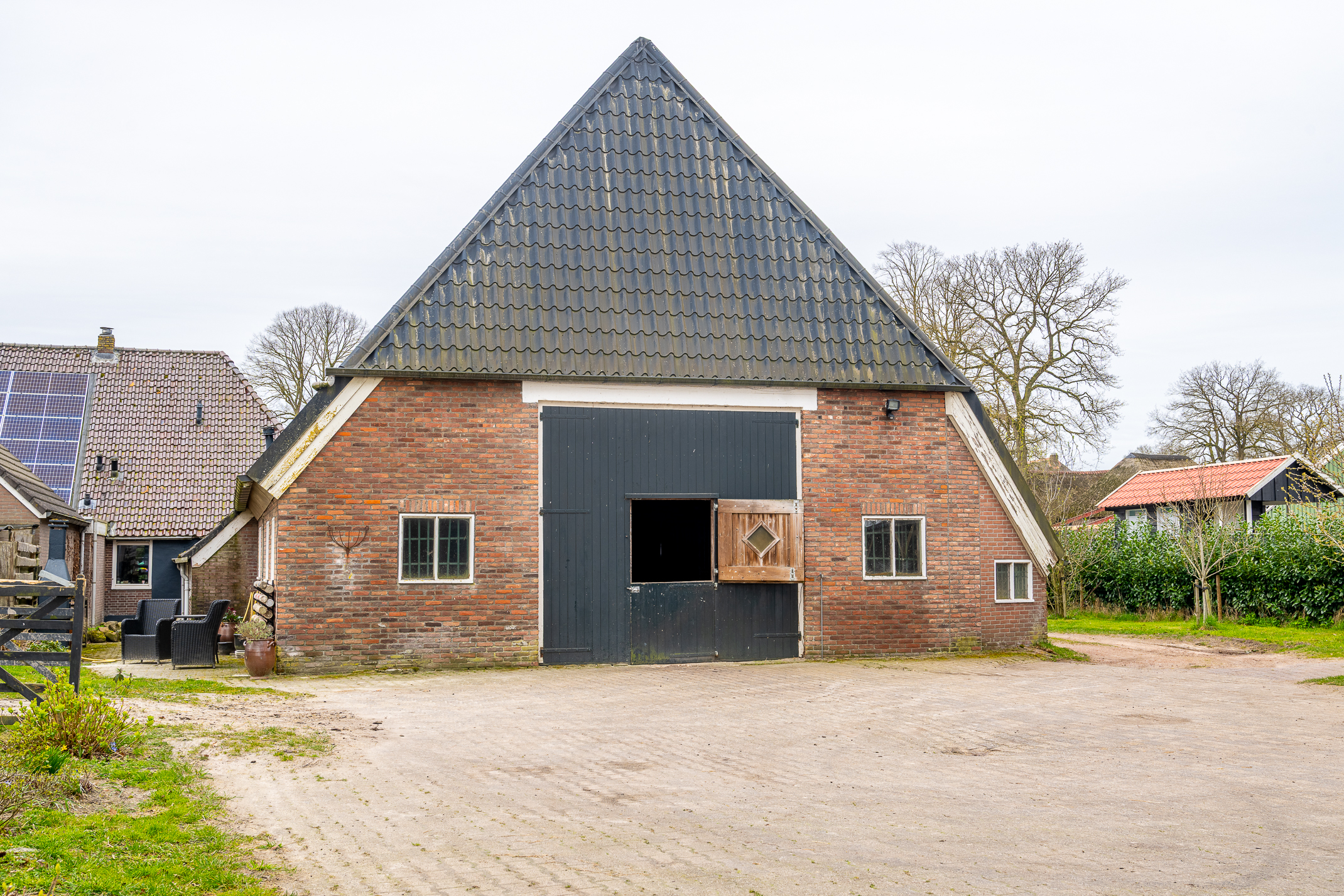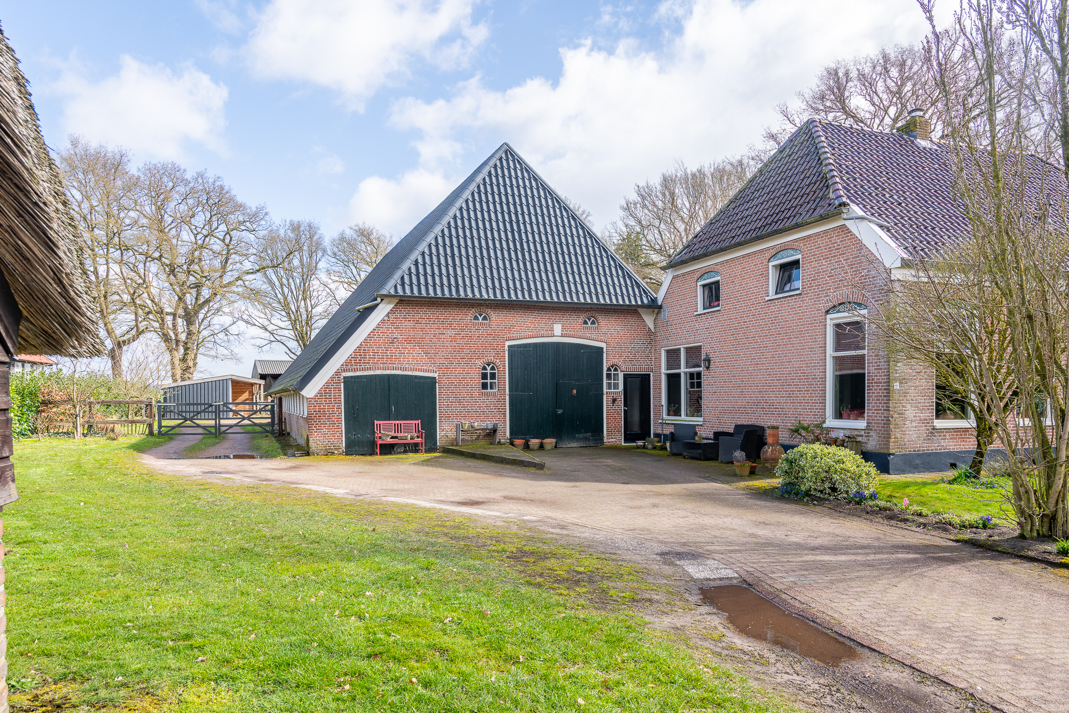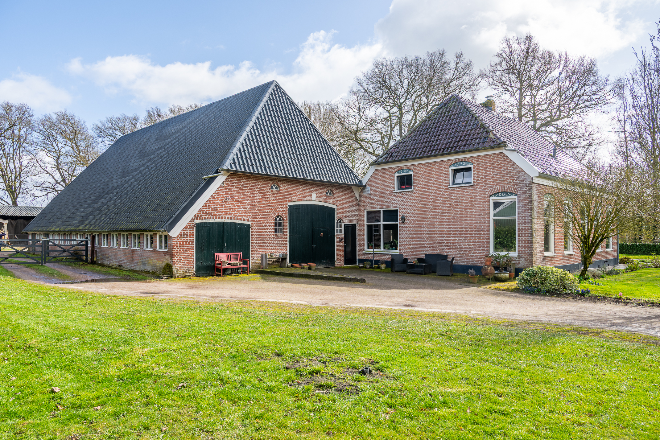 In de kom van het fraaie Drentse dorp Benneveld vindt u deze karakteristieke half vrijstaande herenboerderijwoning met grote aangebouwde schuur waarin oa paardenstallen maar die ook diverse mogelijkheden biedt voor bijvoorbeeld een ambacht (timmerwerkplaats, meubelmakerij) aan huis. Daarnaast nog een kapschuur voor opslag van machines of stalling van auto’s.