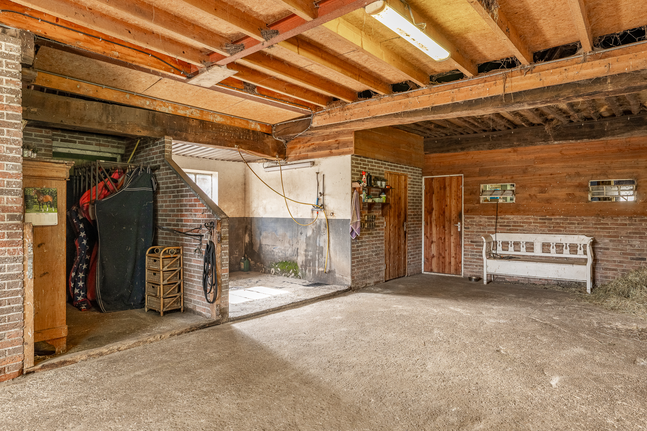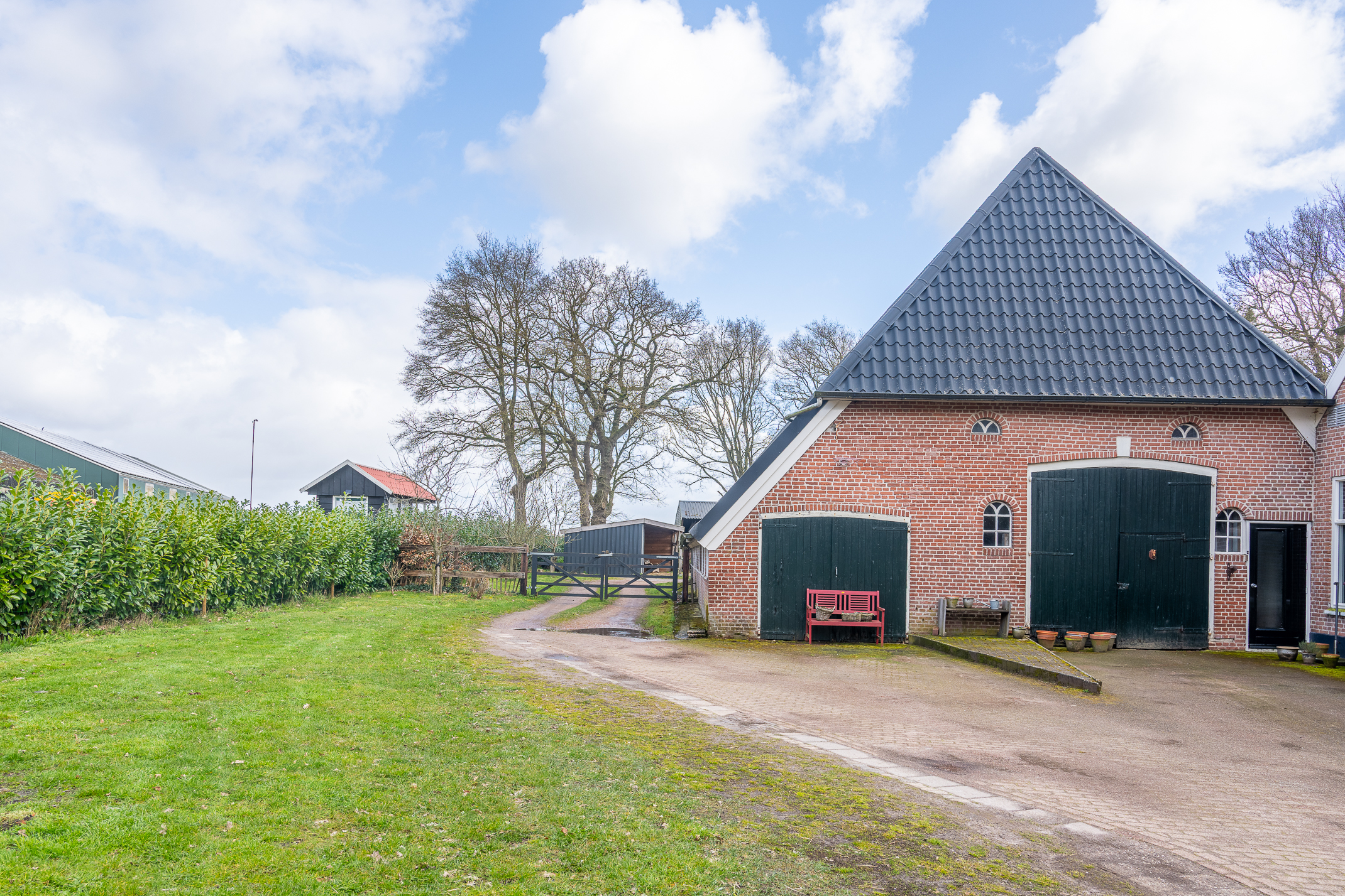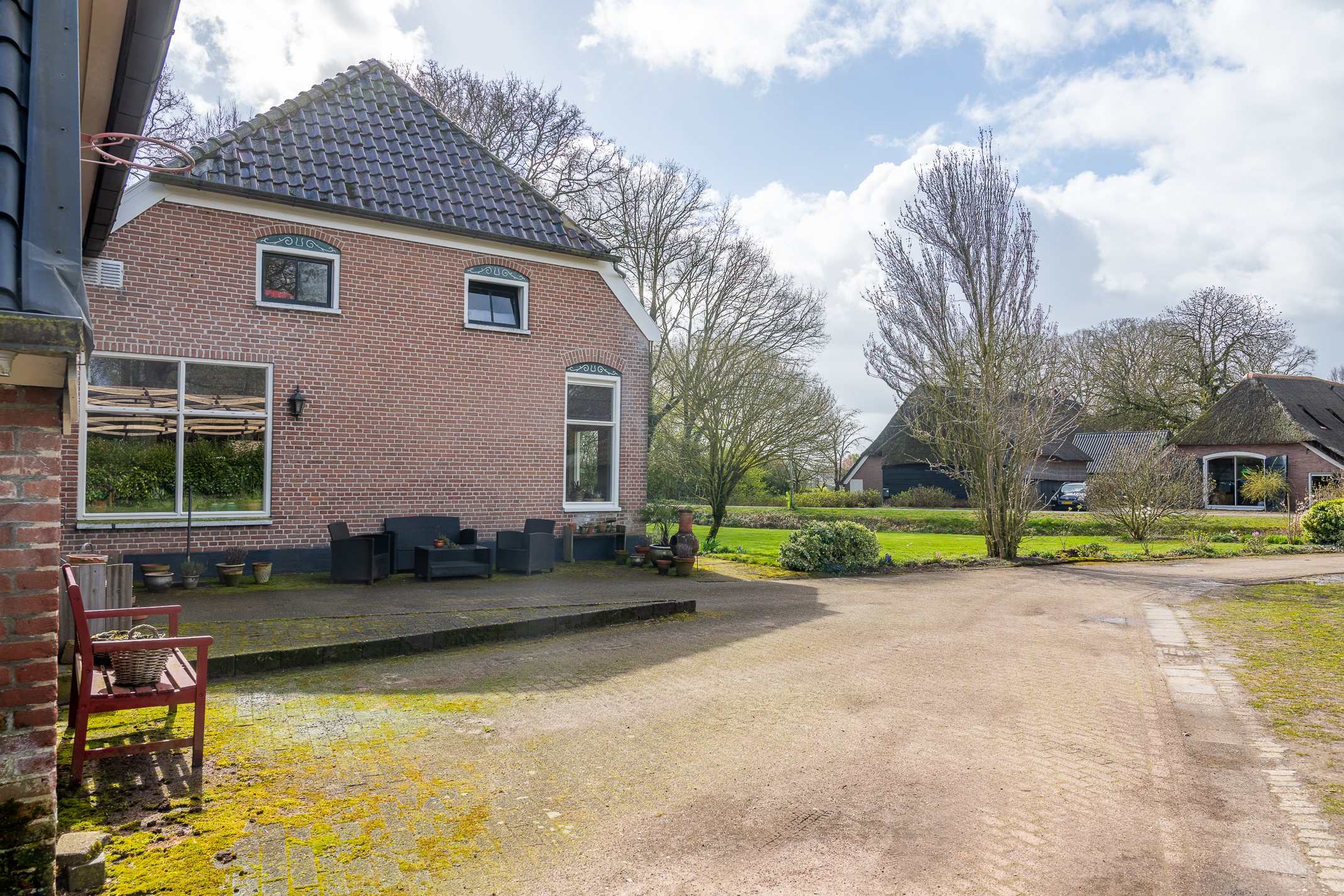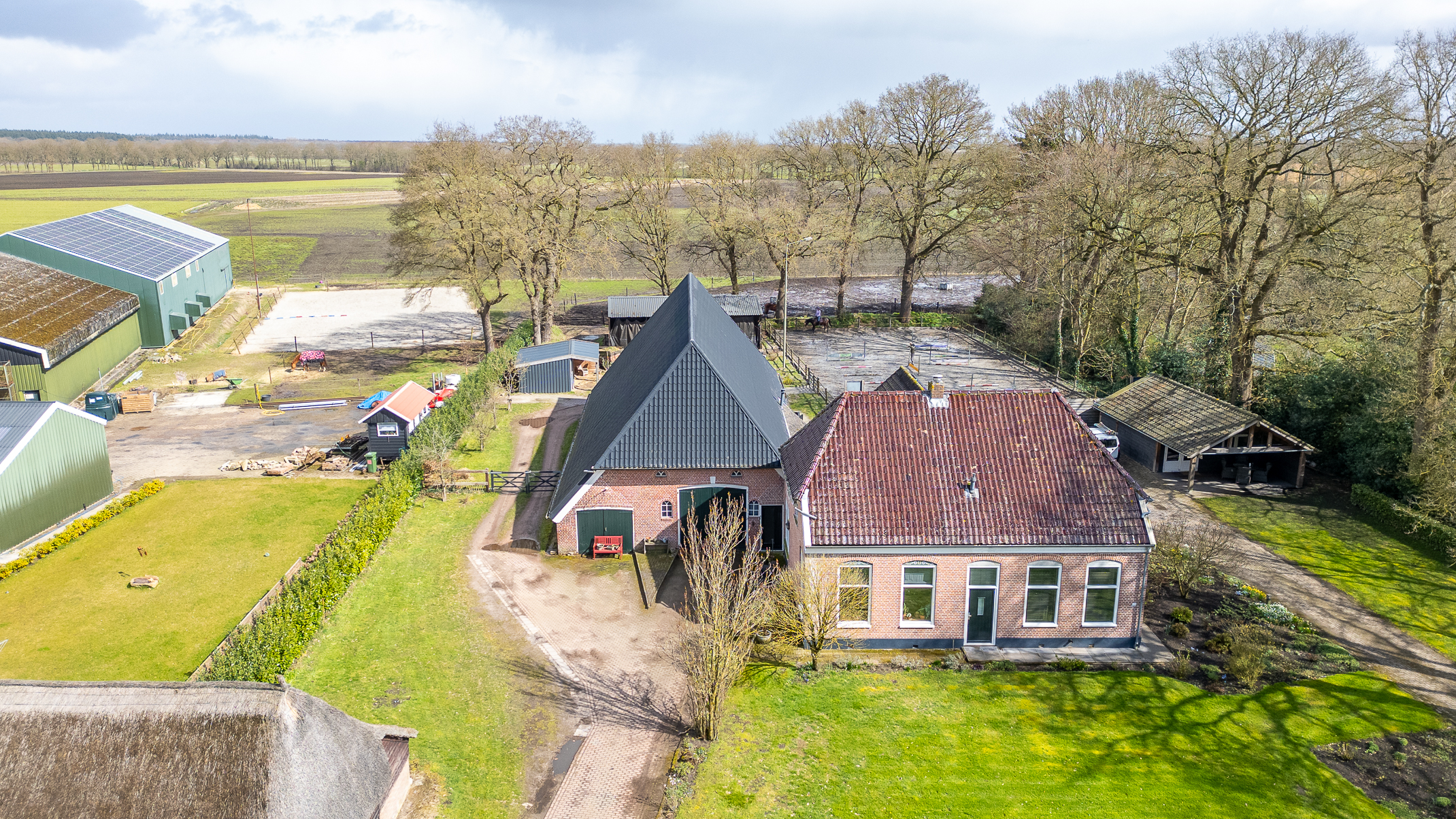 In de kom van het fraaie Drentse dorp Benneveld vindt u deze karakteristieke half vrijstaande herenboerderijwoning met grote aangebouwde schuur waarin oa paardenstallen maar die ook diverse mogelijkheden biedt voor bijvoorbeeld een ambacht (timmerwerkplaats, meubelmakerij) aan huis. Daarnaast nog een kapschuur voor opslag van machines of stalling van auto’s.
