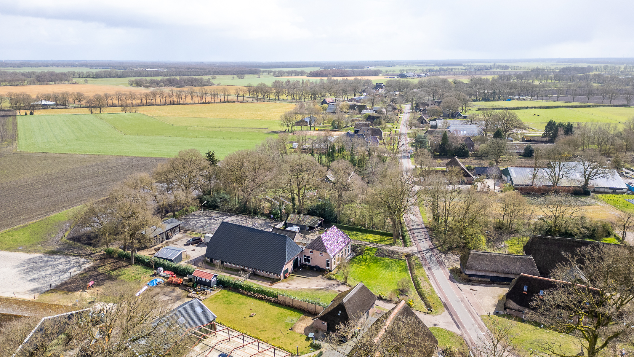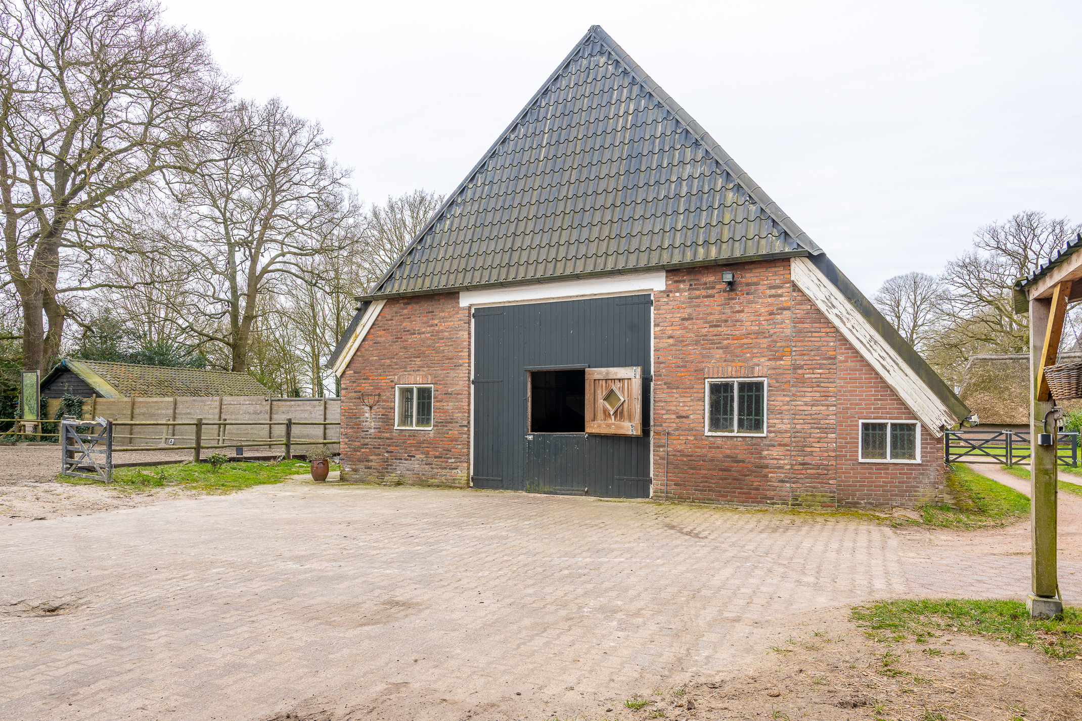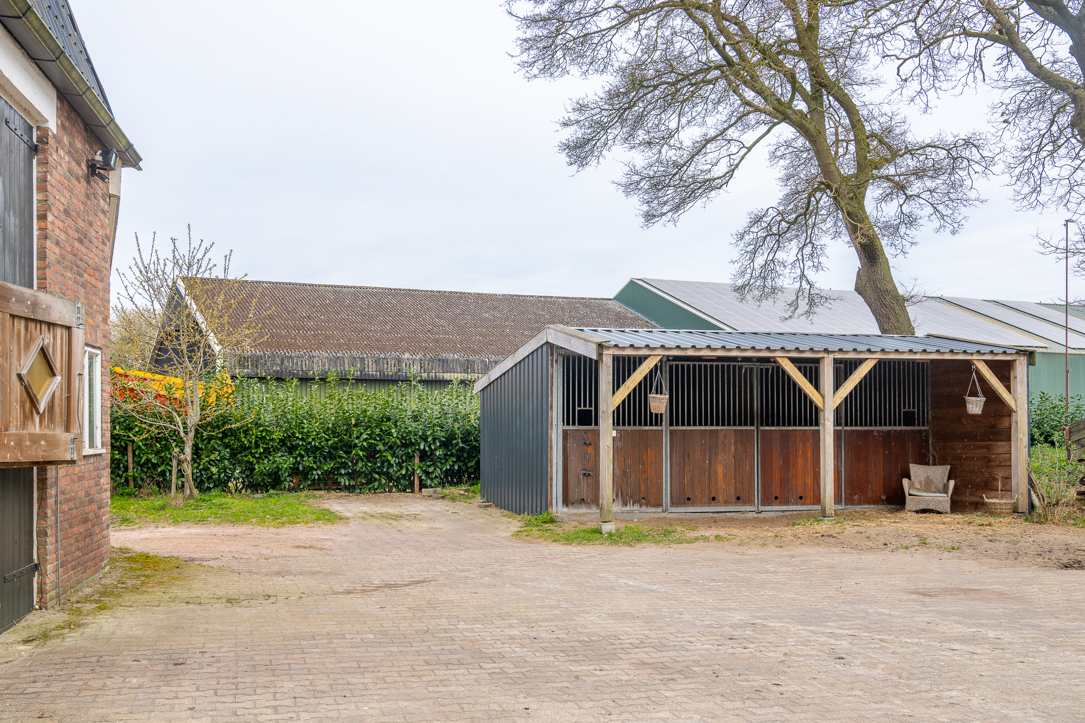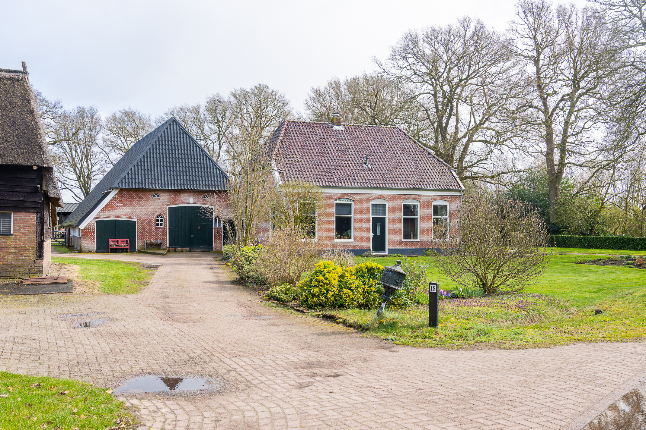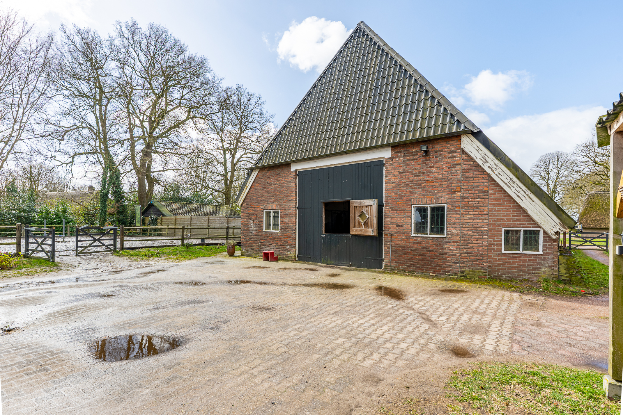 In de kom van het fraaie Drentse dorp Benneveld vindt u deze karakteristieke half vrijstaande herenboerderijwoning met grote aangebouwde schuur waarin oa paardenstallen maar die ook diverse mogelijkheden biedt voor bijvoorbeeld een ambacht (timmerwerkplaats, meubelmakerij) aan huis. Daarnaast nog een kapschuur voor opslag van machines of stalling van auto’s.