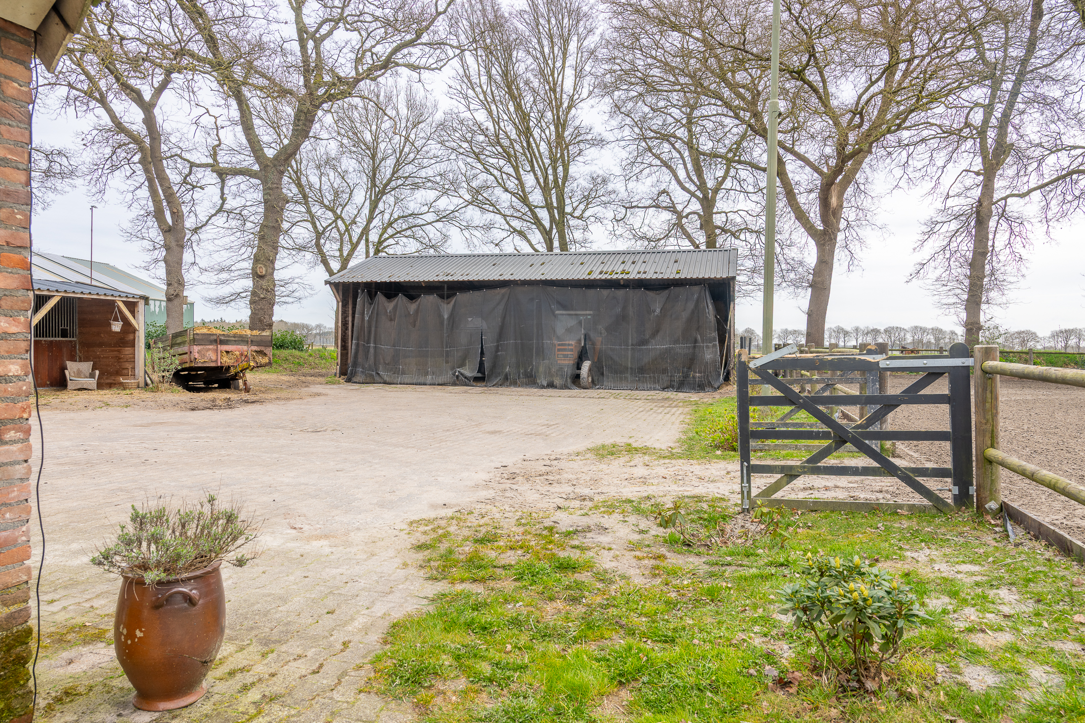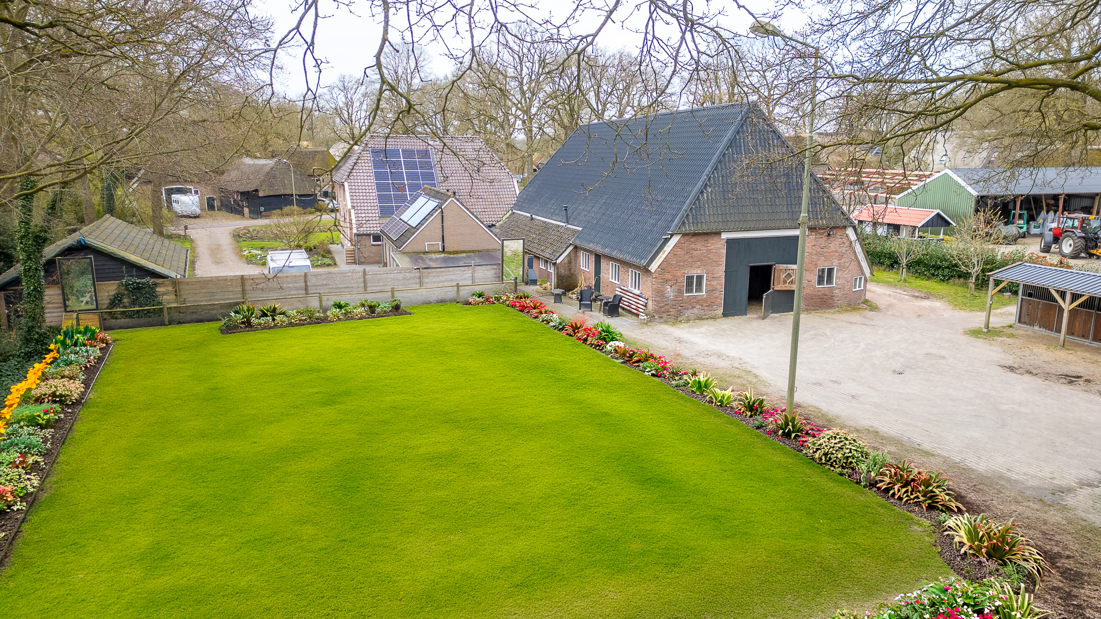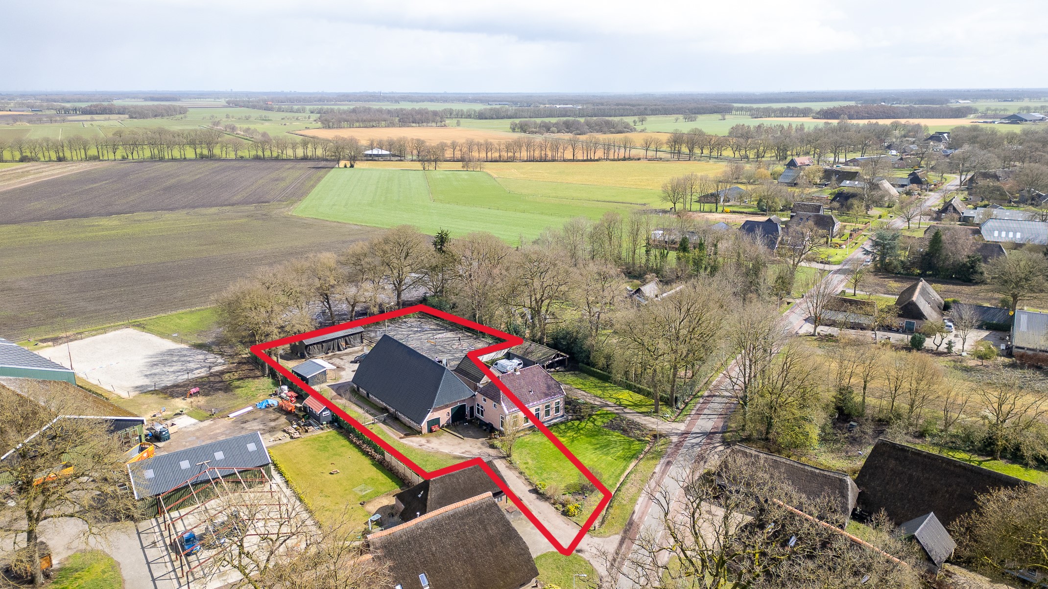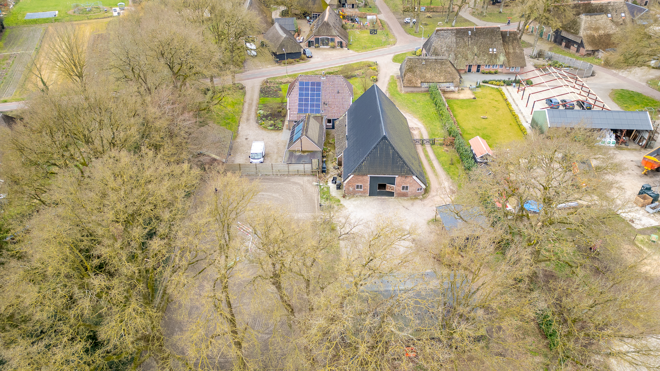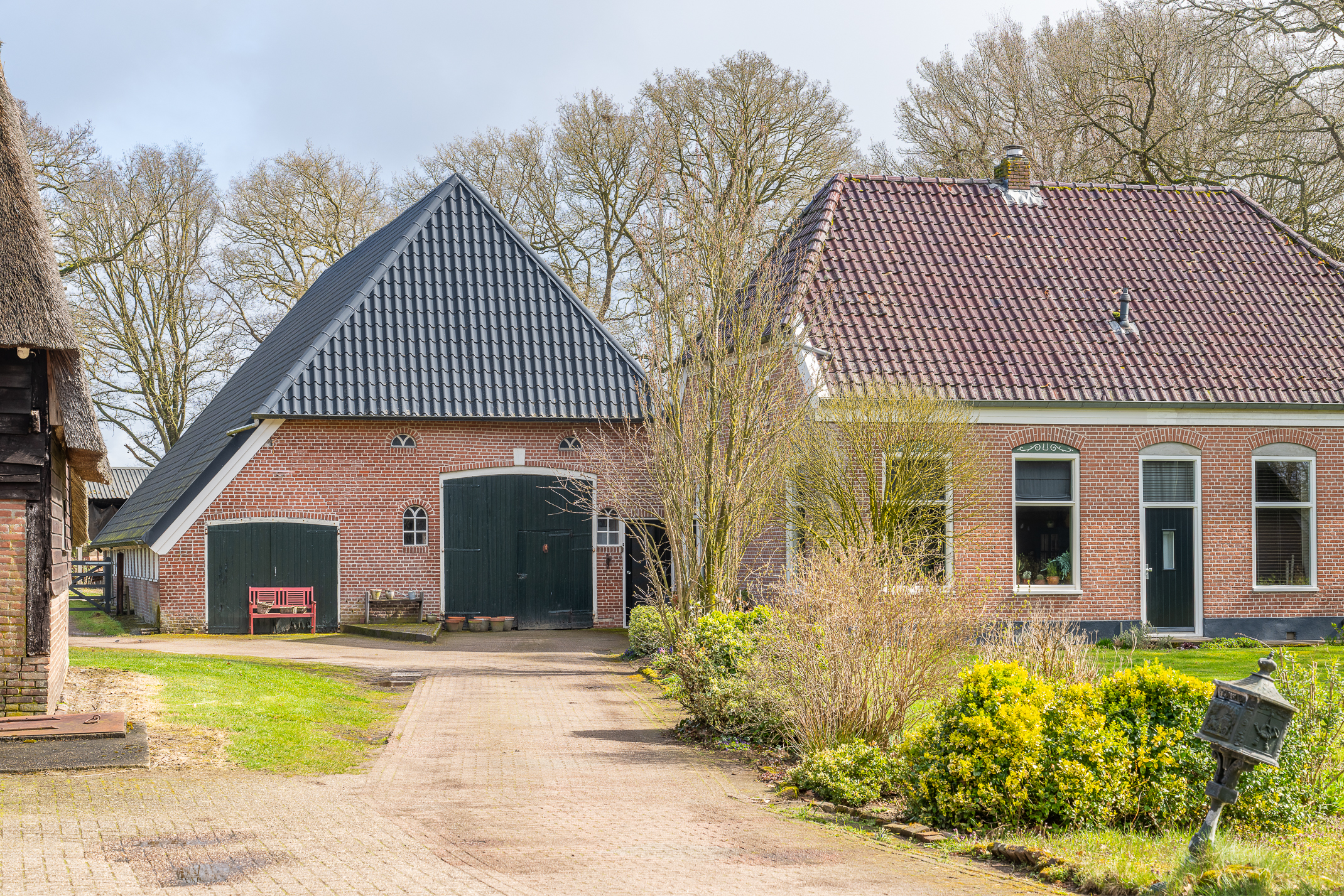 In de kom van het fraaie Drentse dorp Benneveld vindt u deze karakteristieke half vrijstaande herenboerderijwoning met grote aangebouwde schuur waarin oa paardenstallen maar die ook diverse mogelijkheden biedt voor bijvoorbeeld een ambacht (timmerwerkplaats, meubelmakerij) aan huis. Daarnaast nog een kapschuur voor opslag van machines of stalling van auto’s.